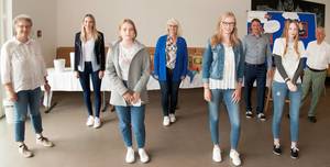 Gemeinsam engagiert für ein erfolgreiches Lernen: v.l. Schulsozialarbeiterin Christine Johannimloh, Helene Linßner, Annika Brink, Claudia Holle, Geschäftsführerin der Osthushenrichstiftung, Edith Markwort, Schulleiter Thomas Epe, Maeve Schumacher, Mitglied des Fördervereins Werner Kuhn