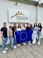 Foto: Teilnehmerinnen des Vorbereitungstreffens mit dem Erasmus Beauftragten des Edith-Stein-Berufskollegs Philipp Hunz